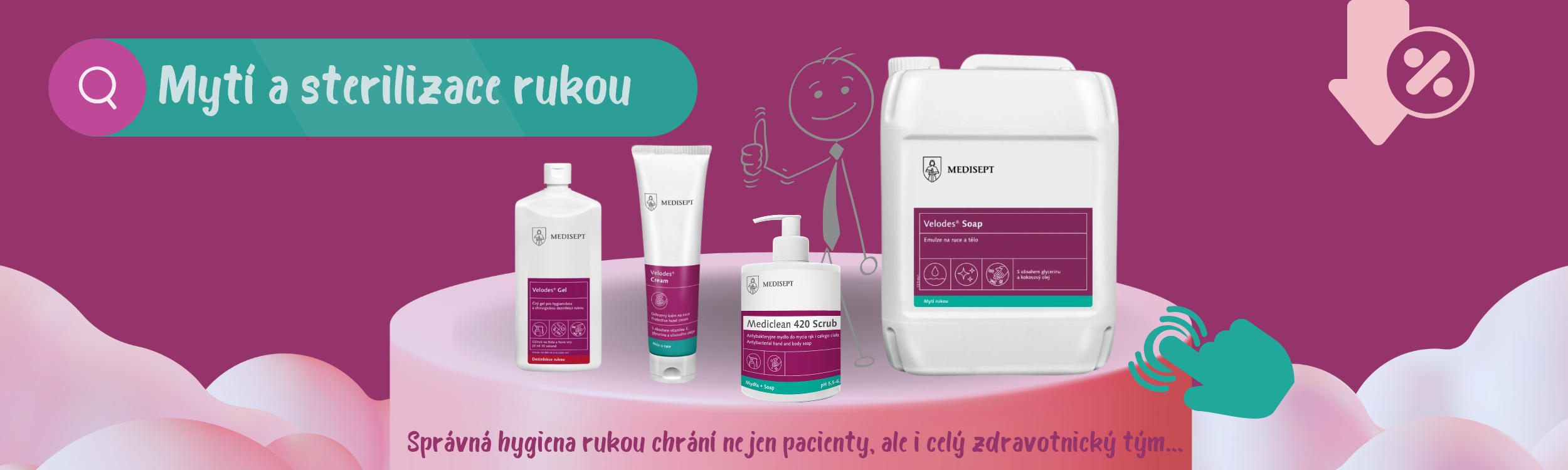 V kategorii mytí a sterilizace rukou nabízíme široký sortiment mýdel, dezinfekčních gelů, roztoků a přípravků pro chirurgickou i hygienickou dezinfekci rukou. Produkty mají rychlý nástup účinku, vysokou účinnost proti bakteriím, virům i plísním a zároveň šetrné složení, které chrání pokožku i při častém používání. V nabídce najdete také dávkovače, stojany, nástěnné držáky a další příslušenství pro hygienickou zónu ordinace.