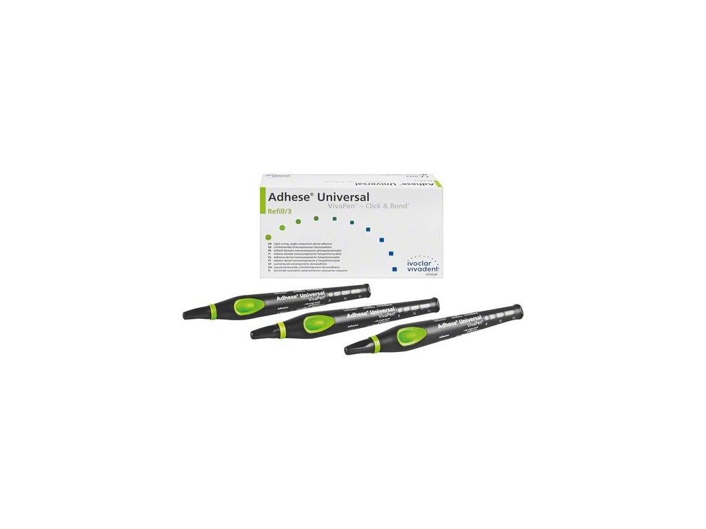 Adhese Universal je jednosložkové, světlem tuhnoucí adhezivum pro přímé a nepřímé postupy vytváření vazby, které disponuje kompatibilitou se všemi leptacími technikami: samo-leptací, selektivního leptání skloviny i technikou total-etch. Adhese Universal se vyrábí v jedinečné formě obalu VivaPen, která umožňuje rychlé a pohodlné přímé intraorální nanášení adheziva za minimálního plýtvání, díky čemuž je nákladově efektivní. Výhody: - Efektivní forma balení: každé balení 2ml VivaPen až pro 190 použití na jednotlivých zubech - Univerzální použití: pro všechny techniky vytváření vazby i leptání - Předvídatelné výsledky: vysoká vazebná pevnost na dentinu i sklovině Balení 3 x 2 ml Adhese Universal VivaPen.