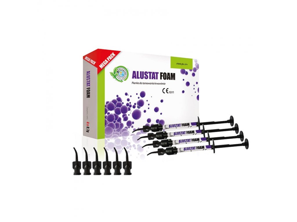 Materiál na dočasnou retrakci gingivy, který nezpůsobuje žádné poranění. Pěna Alustat je určena k zastavení mírného krvácení během zubního ošetření. Balení 4 x 0,8 g.