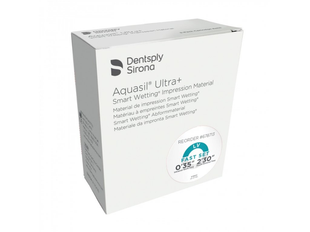 Aquasil Ultra+ je nejnovější kvadrafunkční A-silikonový materiál s vynikajícími hydrofilními vlastnostmi, rozměrovou přesností, vysokou odolností vůči roztržení a trvalé deformaci. Hodí se pro všechny otiskovací techniky a indikace. Je k dostání ve formě tmelu nebo krému jak pro ruční, tak automatické míchaní. Balení 2 x 50 ml kartuše.