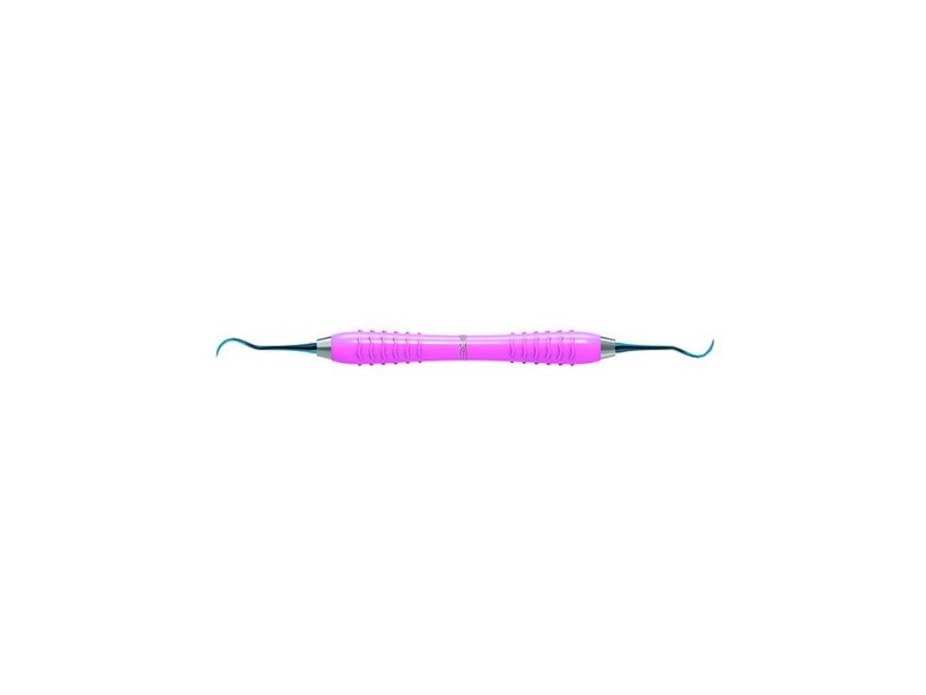 S modrou titan oxidovou vrstvou k redukci adhezivního účinku kompozit. Carve = jemný scaler pro odstranění přebytků kompozit.