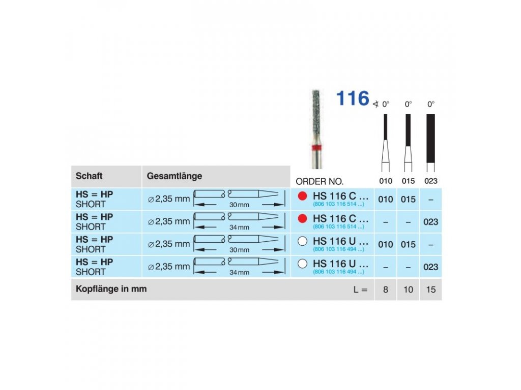 HORICO diamantový brousek - cylindr, HS116, průměr 2,3mm, jemná