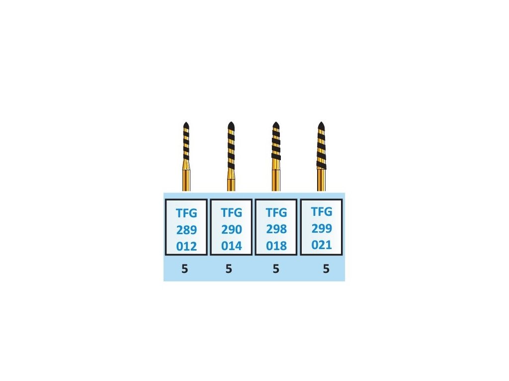 Diamantový brousek TFG - torpédo. Průměr 1,2 mm, zrnitost normal. Balení 5 ks - CENA UVEDENA ZA 1KS!