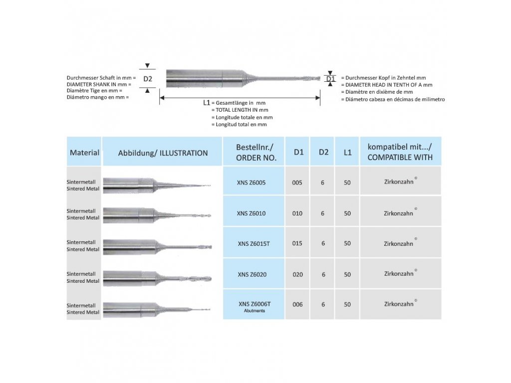 Kompatibilní s Zirkonzahn. Vysoce kvalitní materiál zajišťující dlouhou životnost. Materiál sintermetall, průměr 1,5 mm.