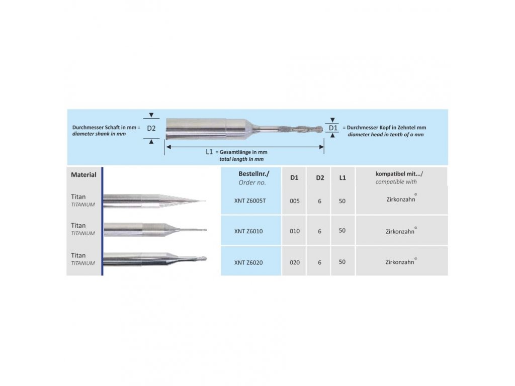 Kompatibilní s Zirkonzahn. Vysoce kvalitní materiál zajišťující dlouhou životnost. Materiál titan, průměr 2 mm.