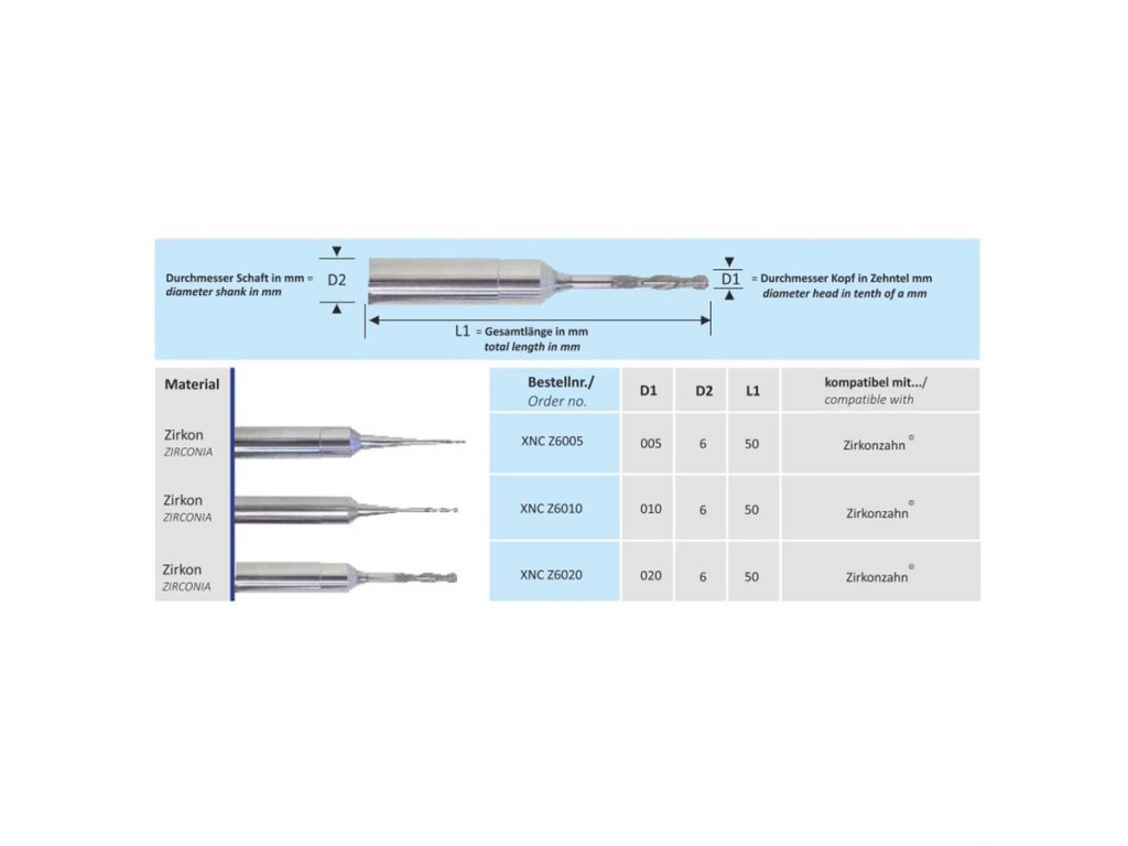 Kompatibilní s Zirkonzahn. Vysoce kvalitní materiál zajišťující dlouhou životnost. Materiál zirkon, průměr 2 mm.