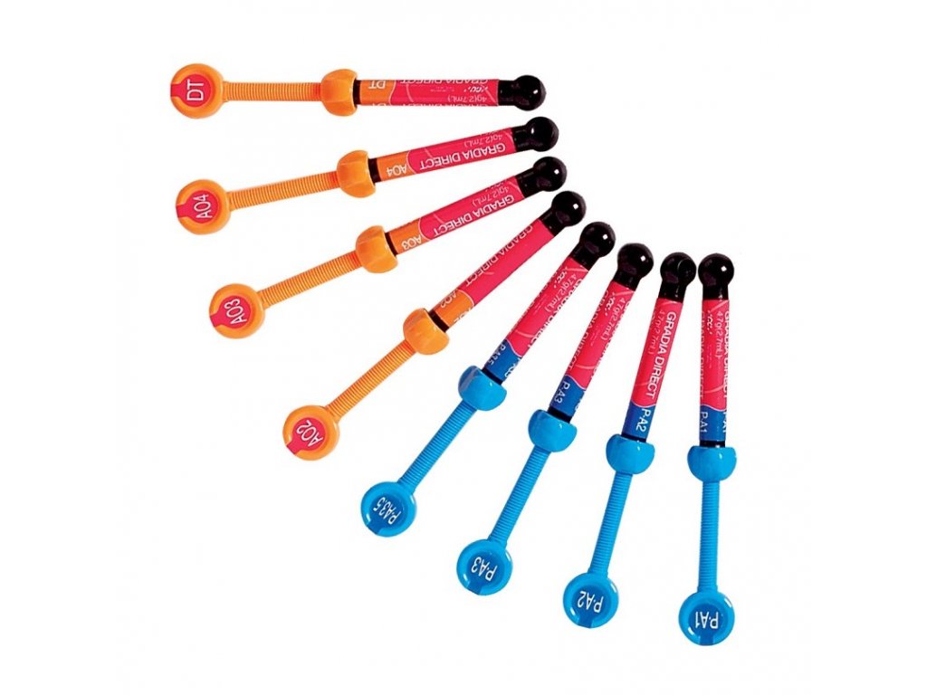 Světlem tuhnoucí kompozitní výplňový materiál. Mikrofilní hybridní kompozit, jedinečný systém skládající se ze standardních (Standard), vnějších speciálních (Outside Special) a vnitřních speciálních (Inside Special) odstínů pro neviditelné výplně. Skvělá manipulace s delší pracovní dobou. S GC Gradia Direct můžete zhotovit všechny esteticky náročné výplně jen s jedním snadno použitelným materiálem. Použití GC Gradia Direct usnadňuje a urychluje zhotovení skvělé a přirozeně působící trvanlivé výplně. Díky pozoruhodnému přizpůsobení odstínu barvě okolní zubní tkáně lze vynikající estetické výplně.