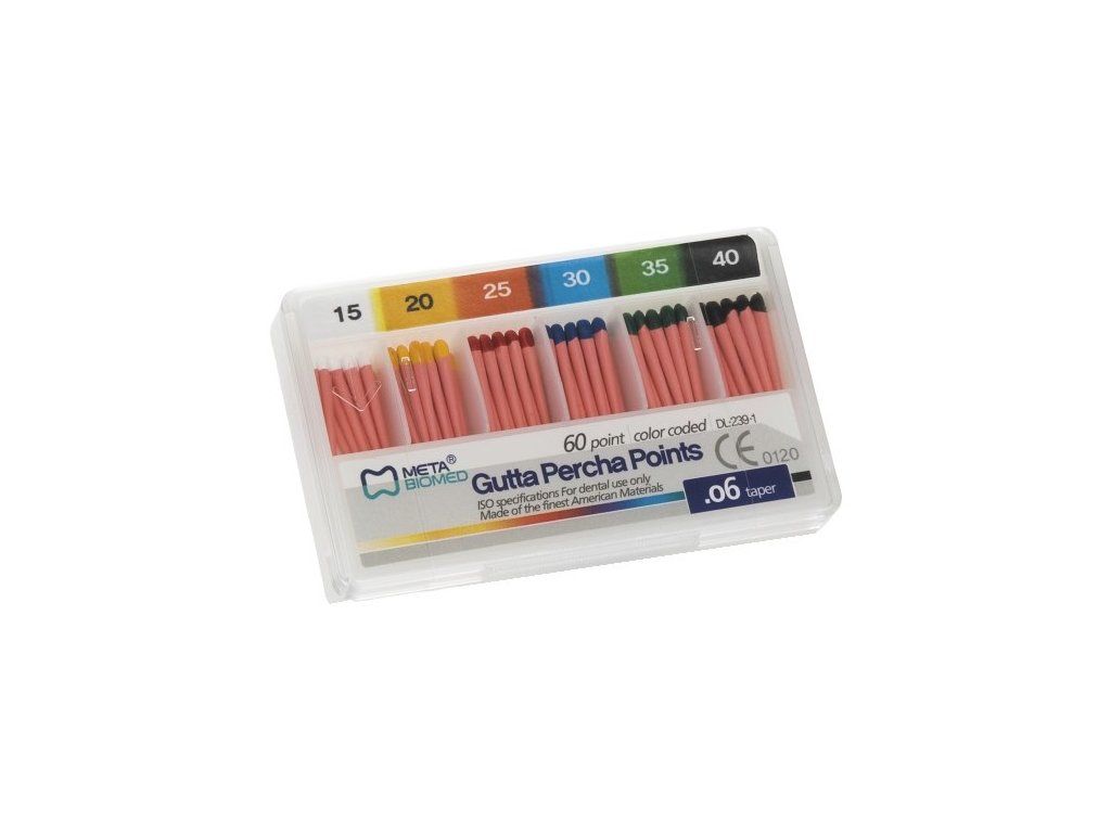 Velmi stabilní, pružné a přesto nelámavé guttaperčové čepy. Rentgenkontrastní. Kónicita 6%. Balení 60 ks.