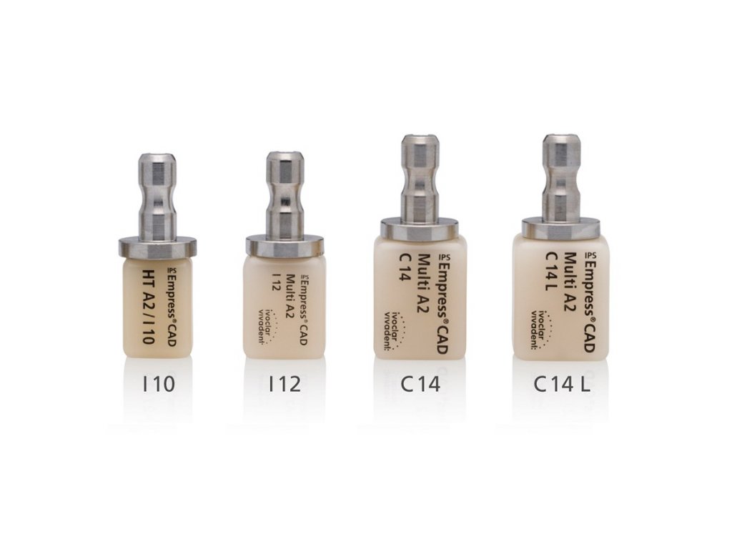 IPS Empress CAD je luecitem vyztužený sklokeramický bloček pro CAD/CAM technologii. Výhody - Vysoká estetika náhrad zhotovených CAD/CAM technikou - 2 různé bločky dle situace u pacienta - Možnost chameleon efektu, přirozený barevný tón nebo přirozený přechod odstínů - Pevnost v ohybu 160 MPa HT bločky Vzhledem k vysoké translucenci a přirozenému chameleon efektu se bločky IPS Empress CAD HT užívají především pro frézování menších náhrad (např. inlejí). Balení 5 ks.