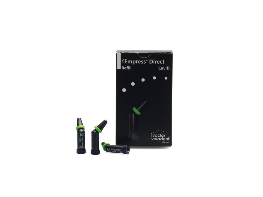 IPS Empress Direct je světlem tuhnoucí, vysoce estetický nano-hybridní kompozitní výplňový materiál pro přímé metody zhotovování výplní ve frontálním a distálním úseku chrupu. Výhody. Široká škála indikací pro frontální i distální úsek chrupu. 32 odstínů a 5 úrovní translucence. Opalescentní odstín. Není třeba používat speciální techniku vrstvení. Vysoce povrchový lesk. Výborná leštitelnost. Fluorescence podobná přirozeným zubům, typická pro materiály Empress. Vzorník odstínů sterilizovatelný v autoklávu, aniž by došlo k vyblednutí keramiky. Vysoce necitlivý na světlo. Dobrá rentgen kontrastnost Balení 10 x 0,2 g kompule.