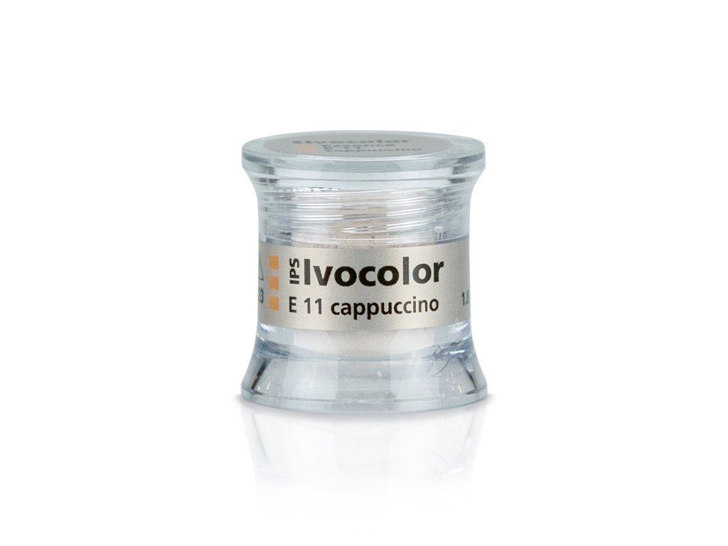 IPS Ivocolor Essence v prášku ve 23 odstínech. Univerzální použití - individualizace povrchů, při vrstvení keramických prášků, do nevypálené keramické struktury. Podobně jako přirozené zuby, materiály IPS Ivocolor Essence disponují určitou fluorescencí. S tekutinou IPS Ivocolor Mixing Liquid (allround, longlife).