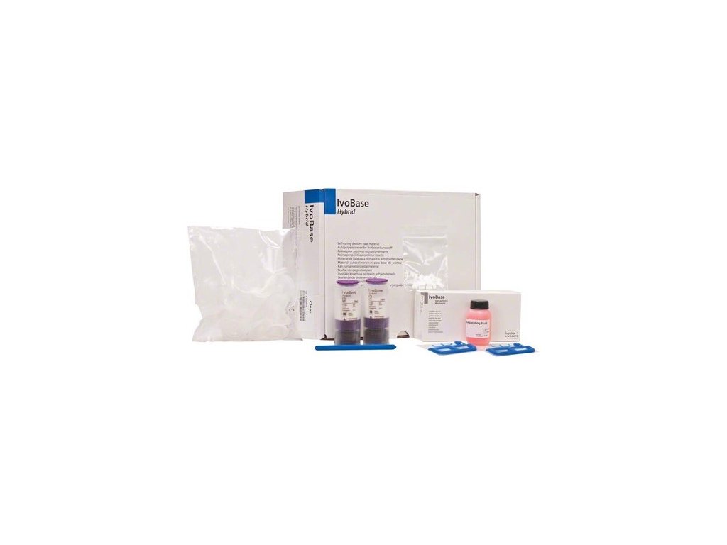 IvoBase Hybrid kombinuje kvalitativní výhody teplem tuhnoucích polymerů s vlastnostmi při zpracování samo-tuhnoucích polymerů a tvoří tak novou kategorii pryskyřic na baze snímatelných náhrad. Materiál na bázi PMMA se zpracovává v injektoru IvoBase Injector. Odpovídá normě EN ISO 20795-1. Výhody: - Vysoká přesnost dosednutí díky kompenzaci smršťování - Velmi nízký obsah zbytkového monomeru < 1% díky redukci zbytkového monomeru (RMR) - Vynikající vazebné vlastnosti s pryskyřičnými zuby - Vysoký základní lesk - Předem nadávkované kapsle - Délka polymerace: pouze 35 minut