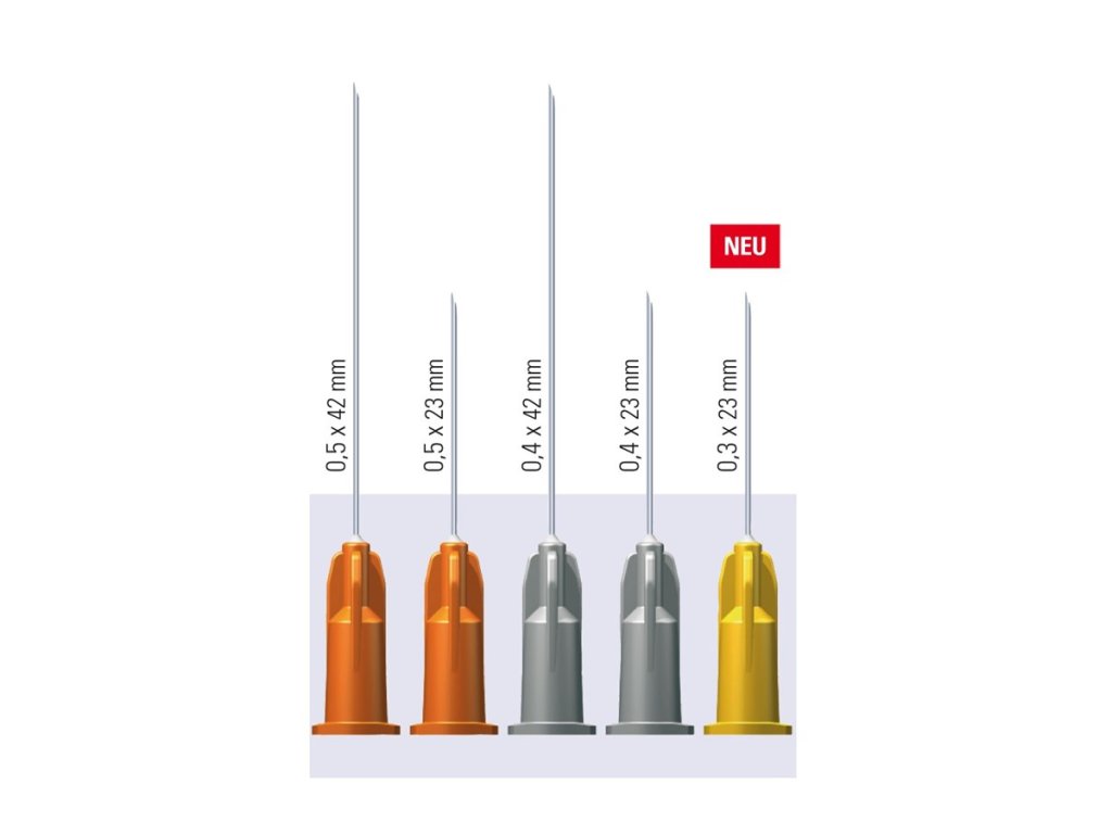 Jednorázové injekční jehly s Luer Lock 0,4 x 42 mm. Sterilizovatelné, jednotlivě balené v blistru 100 ks.
