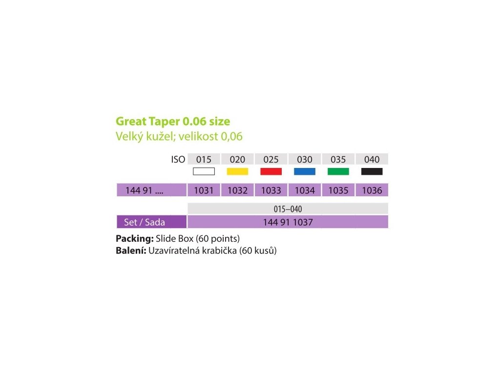 Čepy gutta percha kužel 0,06 040