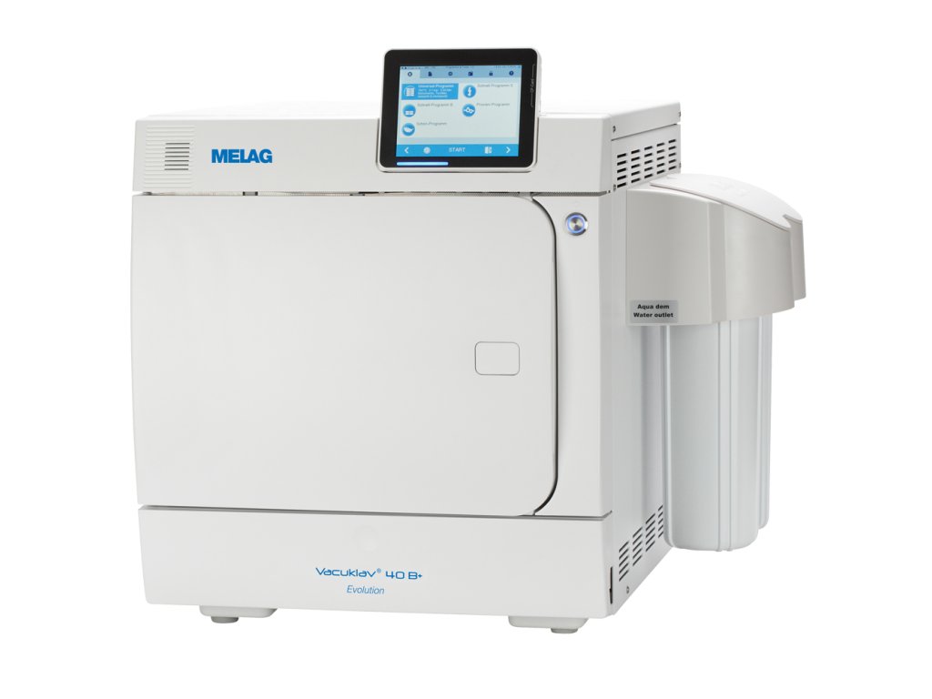 Dvoukomorové zařízení na úpravu vody pracující na principu iontové výměny. Je určeno pro připojení k autoklávu MELAG VACUCLAV 118 a VACUCLAV 123, do kterého automaticky dopouští demineralizovanou vodu. MELAdem 40 lze instalovat na boční stěnu autoklávu, na zeď ordinace nebo do spodní skříňky nábytku.