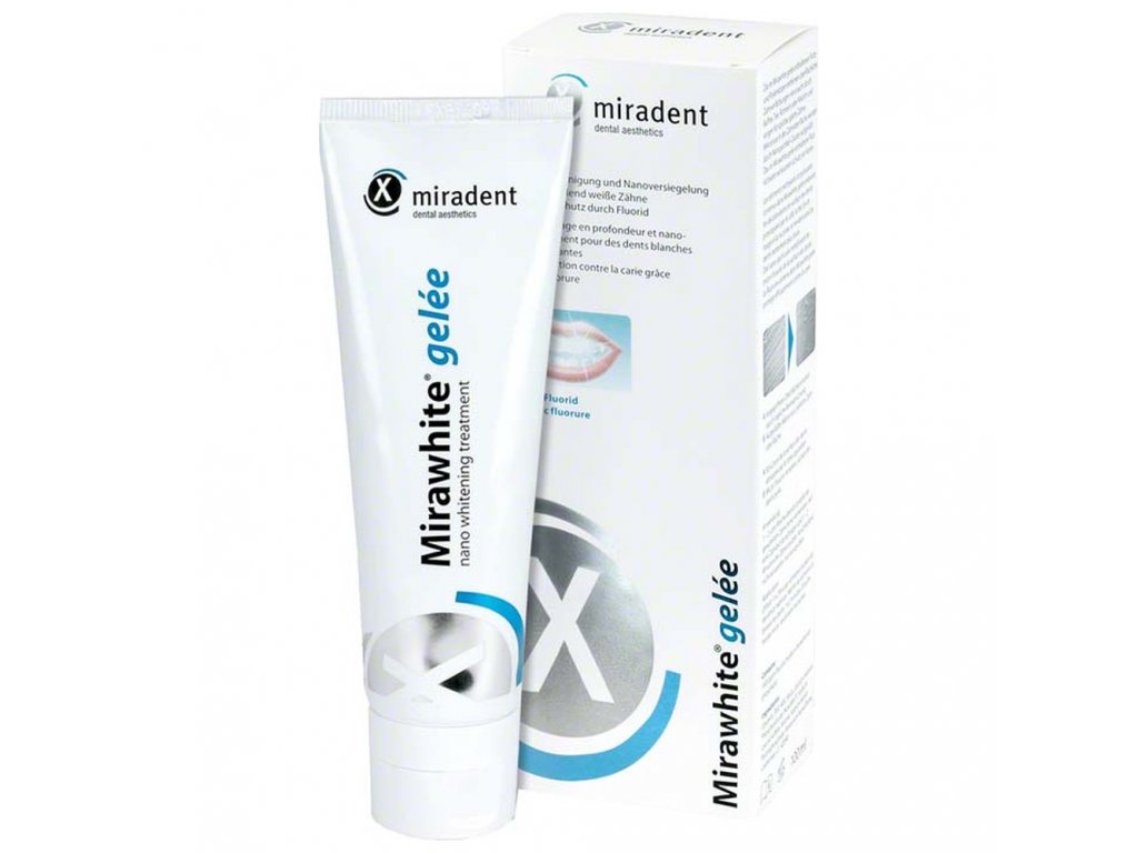 Mirawhite Gelée - je speciální zubní gelová pasta na čištění a leštění zubů. Obsahuje speciální nano-částice, které jemně čistí, leští, odstraňují plak a diskolorace. Mirawhite gelée navíc dokáže zacelit tzv. mikroprasklinky, které se přirozeně vytvářejí na zubní sklovině a přispívají tak k tvoření nových pigmentů. Tyto mikroprasklinky jsou díky technologii Novamin zaplněny shlukem nano-částic, které zabraňují další diskoloraci, ale také chrání před vznikem zubního kazu.