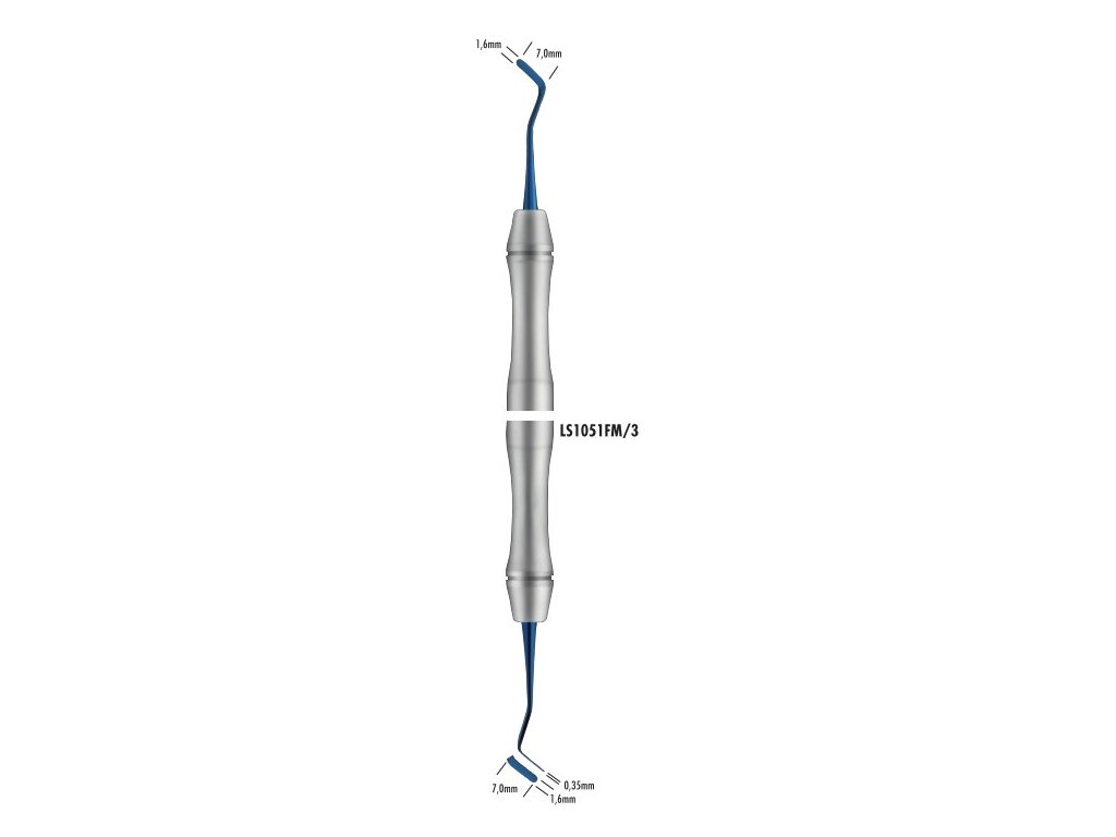 GOLDSTEIN flex mini, MINI-Flex provedení nástroje LS1051F/80. Materiál LiquidSteel. - Ultra lehká, ergonomická dutá rukojeť s matným povrchem pro namáhavé a špatně osvětlené práce (redukuje odraz světla). - Extrémně tvrdý povrch odolný proti poškrábání. - Tmavě modrá barva pracovních částí pro perfektní kontrast k výplňovému materiálu (kontrast mezi materiálem a nástrojem). - TITAN-OXIDOVÁ povrchová úprava. - NANO krystalická povrchová struktura v provedení PLASMA PVD. - Velmi superhydrofobní (tzv.efekt lotosového květu).
