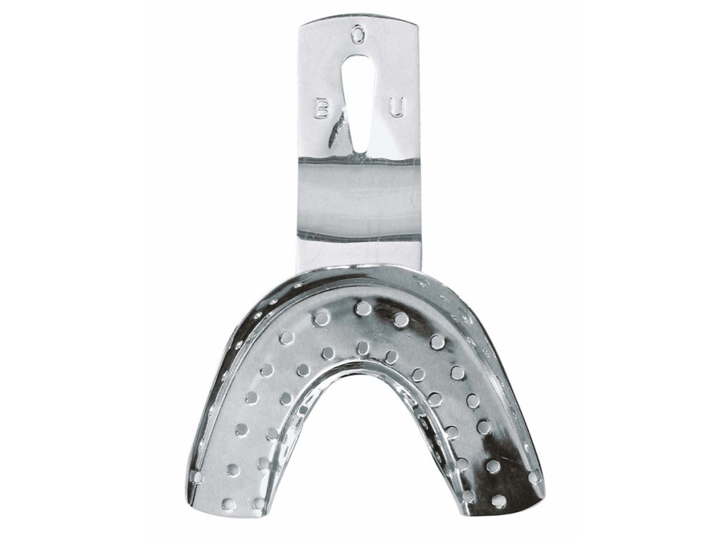 5 velikostí pro horní čelist (BO 0 - 4) a 5 velikostí pro dolní čelist (BU 0 - 4) vyrobené z kvalitní nerezové oceli. Perforované pro perfektní adhezi otiskovacích hmot, zaoblený tvar pro atraumatické otiskování. Elektropolitura zajišťuje odolnost proti korozi. Určeny pro autoklávování, termodesinfekci, čištění v ultrazvukových čističkách. Dolní čelist ozubená. Velikost 0 - BU/0.