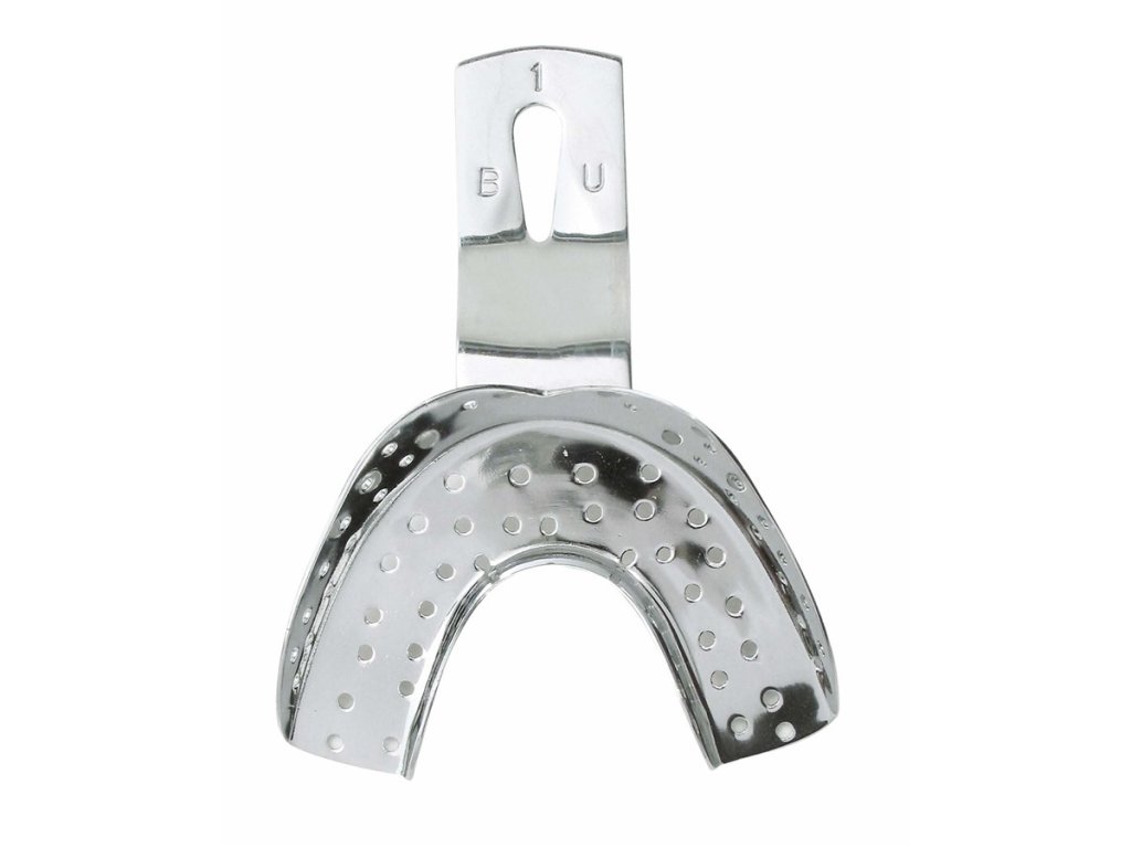5 velikostí pro horní čelist (BO 0 - 4) a 5 velikostí pro dolní čelist (BU 0 - 4) vyrobené z kvalitní nerezové oceli. Perforované pro perfektní adhezi otiskovacích hmot, zaoblený tvar pro atraumatické otiskování. Elektropolitura zajišťuje odolnost proti korozi. Určeny pro autoklávování, termodesinfekci, čištění v ultrazvukových čističkách. Dolní čelist ozubená. Velikost 1 - BU/1.