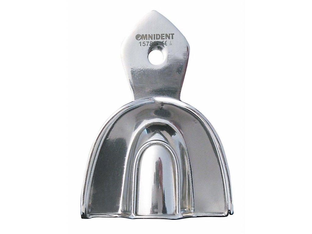 OMNIDENT otiskovací lžíce poskytují odpovídající retenci díky speciálnímu okraji bez nutnosti používat adhezivum. Materiál 18/8 ocel. Horní čelist ozubená. Velikost 1 - OK S/4.