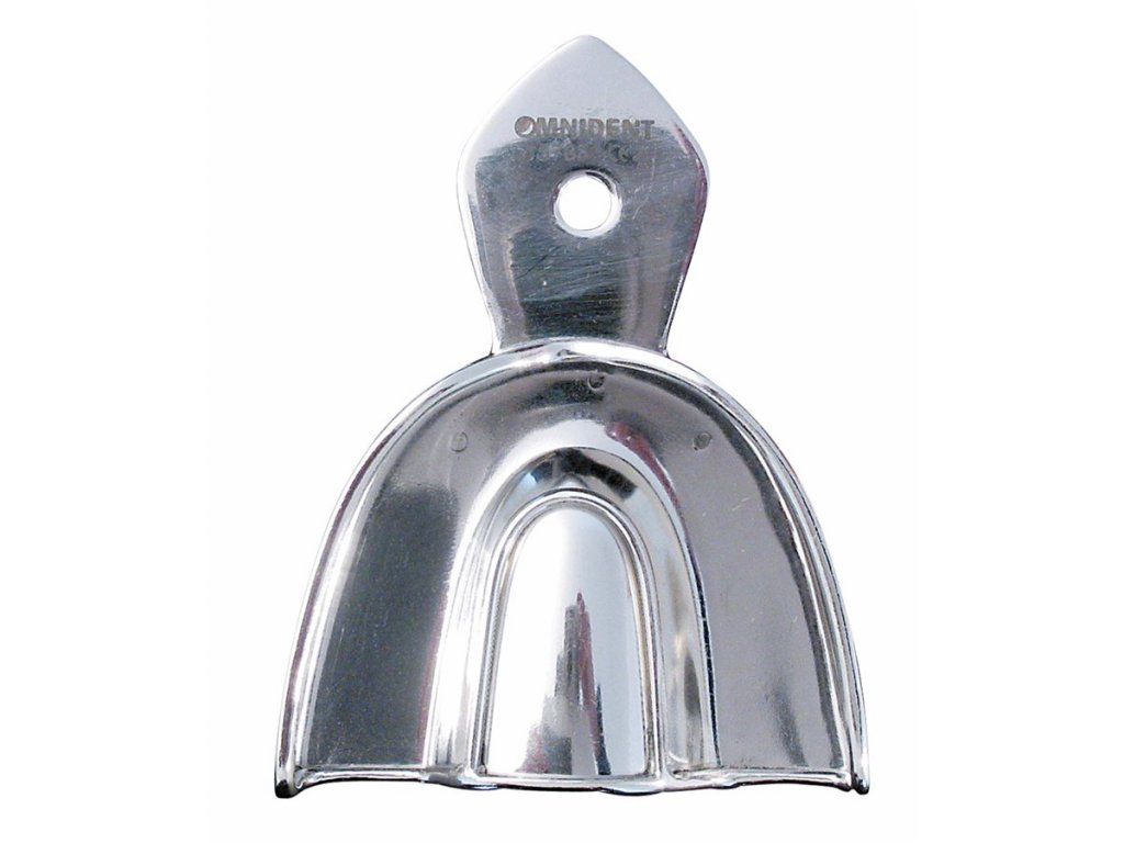 OMNIDENT otiskovací lžíce poskytují odpovídající retenci díky speciálnímu okraji bez nutnosti používat adhezivum. Materiál 18/8 ocel. Horní čelist ozubená. Velikost 2 - OK M/3.