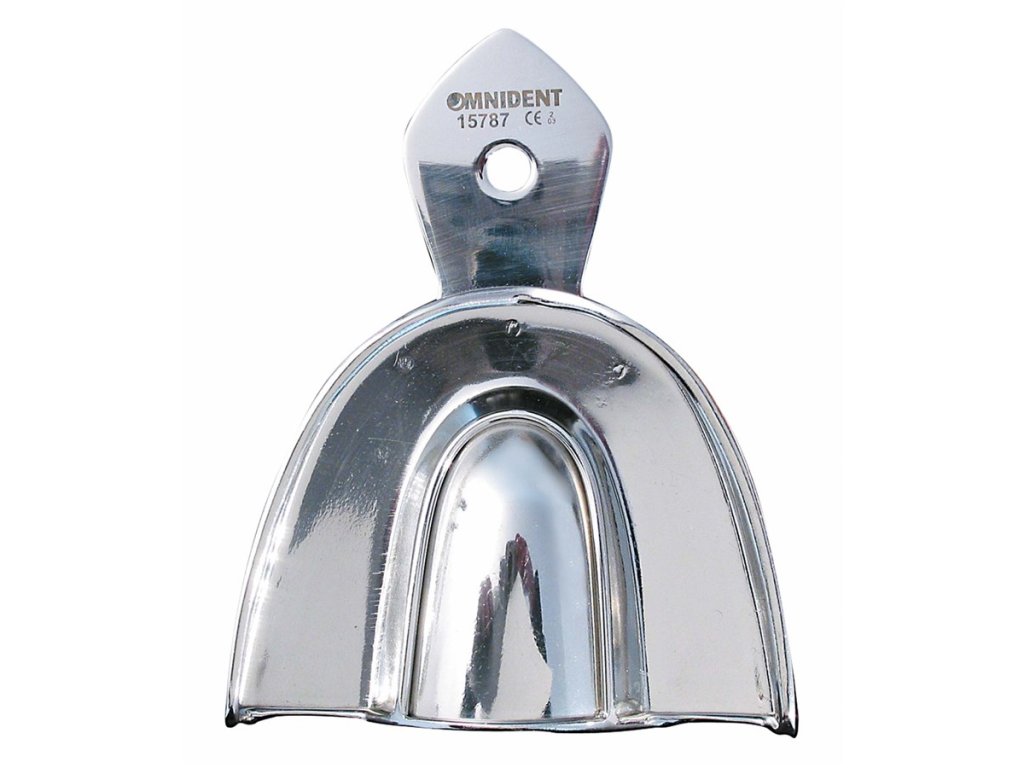 OMNIDENT otiskovací lžíce poskytují odpovídající retenci díky speciálnímu okraji bez nutnosti používat adhezivum. Materiál 18/8 ocel. Horní čelist ozubená. Velikost 4 - OK XL/1.