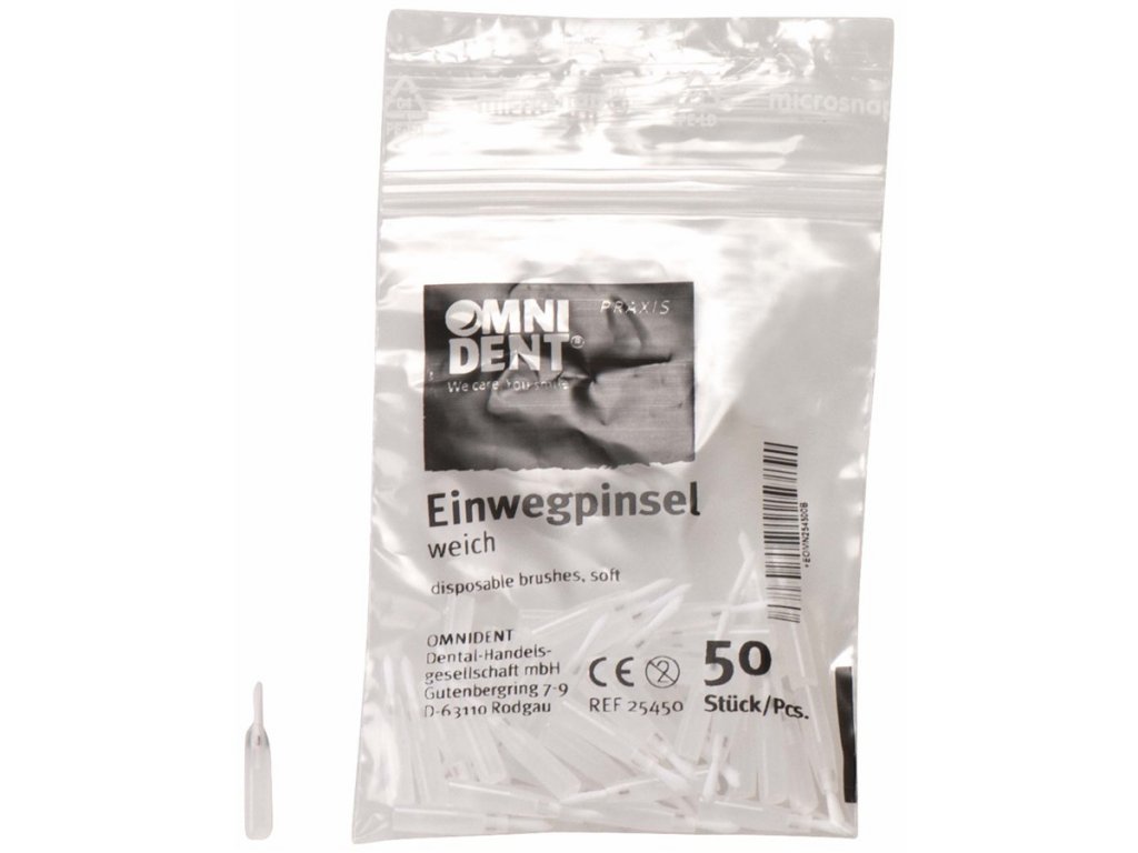 Jednorázové štětečky z nylonového vlákna pro pohodlnou aplikaci tekutin a gelů. Ve znovu uzavíratelném průhledném sáčku. Průhledné (transparent), vlákno bílé, měkké. Balení 50 ks.