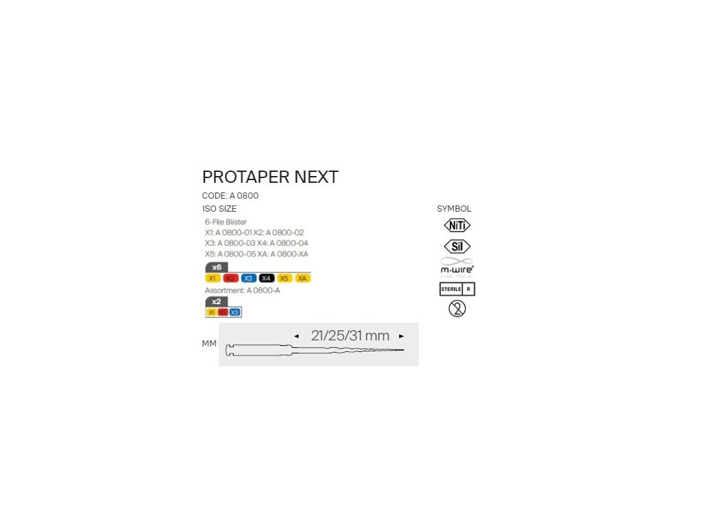 ProTaper Next NitiFile - rotační nástroje, 6ks, 25mm X1