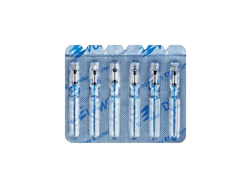 Reciproc Blue: speciálním tepelným opracováním je dosaženo vyšší fexibility, která pomáhá lepšímu vycentrování nástroje v kořenovém kanálku. Nástroj lze mírně předehnout, pro zakřivený kanálek nebo nutnost „obejít“ překážku (schůdek, zalomený nástroj). A z Reciprocu zůstaly vlastnosti jako reciprokační pohyb, průřez tvaru S, řezná účinnost a efektivita při opracování MB2. Velikosti R25, R40, R50. Délka 21, 25 a 31 mm. Balení 6 ks.