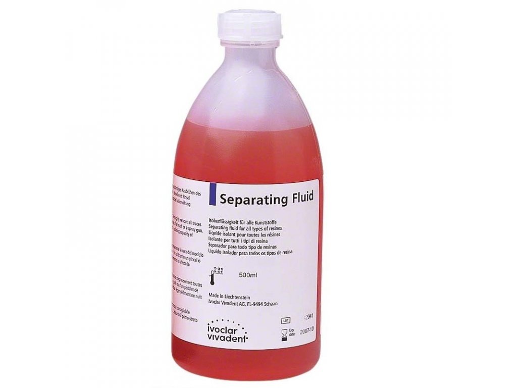 Separating Fluid vykazuje vynikající separační vlastnosti a optimálně tudíž izoluje všechny materiály Ivoclar Vivadent na výrobu bazí snímatelných náhrad a zajišťuje jejich hladký povrch. Balení obsahuje 500 ml v plastové lahvičce.