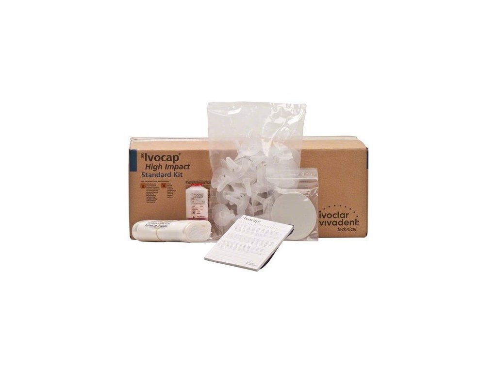Předem nadávkovaný materiál na baze snímatelných náhrad SR Ivocap High Impact vykazuje konzistentní kvalitu, protože je mísen do homogenní konzistence pomocí míchače kapslí Cap Vibrator. SR Ivocap High Impact vykazuje oproti svému předchůdci výrazně lepší kvalitu, a to díky 25 % nárůstu odolnosti vůči nárazu. Materiál odpovídá normě EN ISO 20795-1. Výhody - Materiál velice odolný vůči napětí a zlomení pro stabilní baze náhrad nesených implantáty - Přesnost dosednutí bez vertikálního zvýšení skusu - Vynikající vazebné vlastnosti s pryskyřičnými zuby - Výborná leštitelnost - Osvědčená a ozkoušená injektážní technika Standard Kit 50 x 20 g High Impact Polymer, 50 x 30 ml Monomer, příslušenství.
