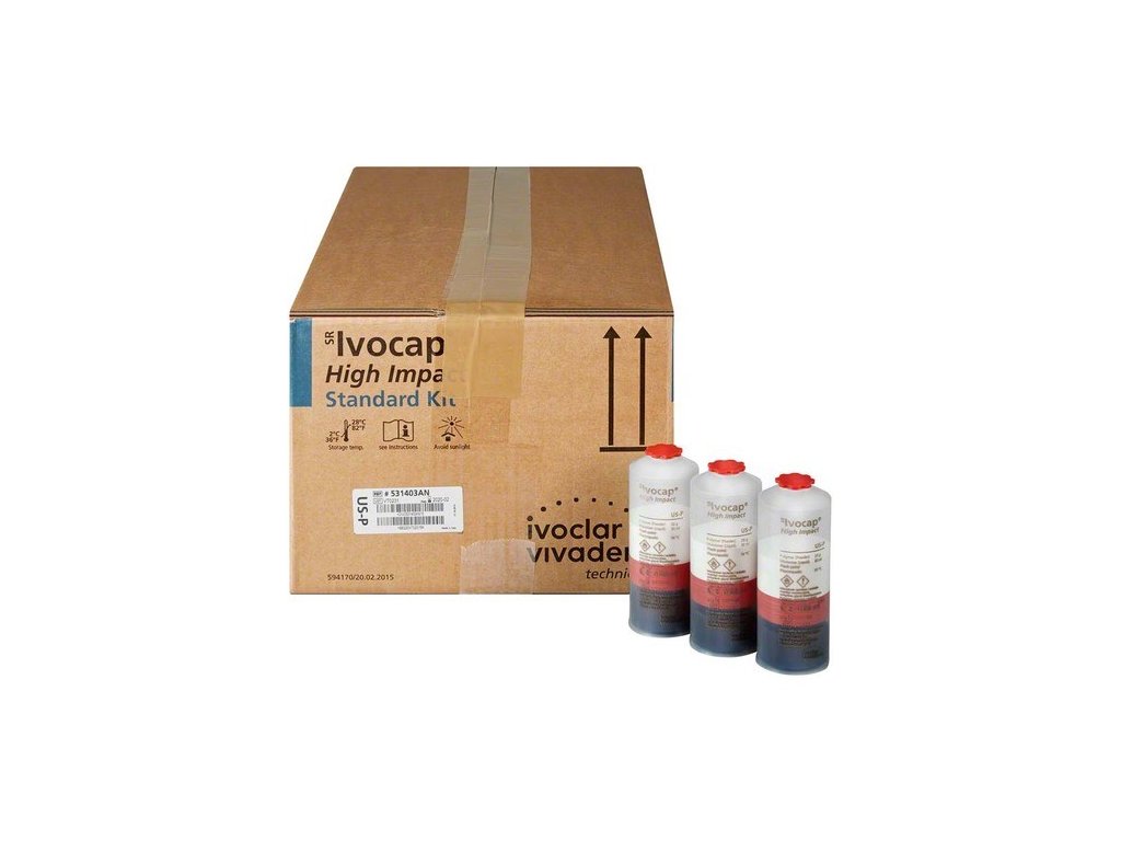 Předem nadávkovaný materiál na baze snímatelných náhrad SR Ivocap High Impact vykazuje konzistentní kvalitu, protože je mísen do homogenní konzistence pomocí míchače kapslí Cap Vibrator. SR Ivocap High Impact vykazuje oproti svému předchůdci výrazně lepší kvalitu, a to díky 25 % nárůstu odolnosti vůči nárazu. Materiál odpovídá normě EN ISO 20795-1. Výhody - Materiál velice odolný vůči napětí a zlomení pro stabilní baze náhrad nesených implantáty - Přesnost dosednutí bez vertikálního zvýšení skusu - Vynikající vazebné vlastnosti s pryskyřičnými zuby - Výborná leštitelnost - Osvědčená a ozkoušená injektážní technika Standard Kit 50 x 20 g High Impact Polymer, 50 x 30 ml Monomer, příslušenství.