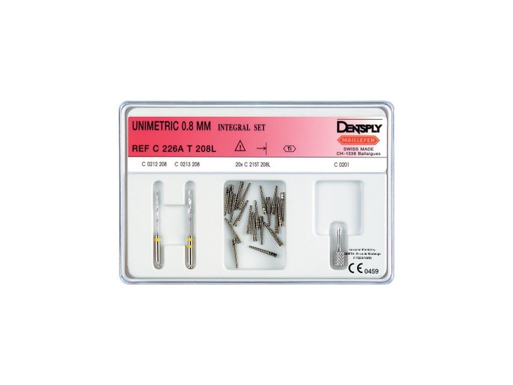 Systém nástavbových čepů. Balení 20 ks titanových čepů - vel. 208L, průměr 1,0 mm, 1x pronikač, 1x vrtáček, 1x klíč.