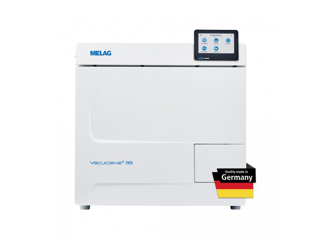 Autokláv třídy B s objemem komory 17 litrů. Nová generace léty prověřeného autoklávu Vacuklav 31B+ s novým dotykovým displejem, inteligentním ovládáním, dokumentací a koncepcí komory o objemu 17 litrů, nabízí Vacuclave 118 vše, co potřebujete pro bezpečnou a pohodlnou sterilizaci. Přístroj obsahuje vnitřní zásobníky čisté a použité vody, což umožňuje jednoduchou a rychlou instalaci přístrojů na libovolném místě. Cena je vč. odborné instalace a zaškolení.