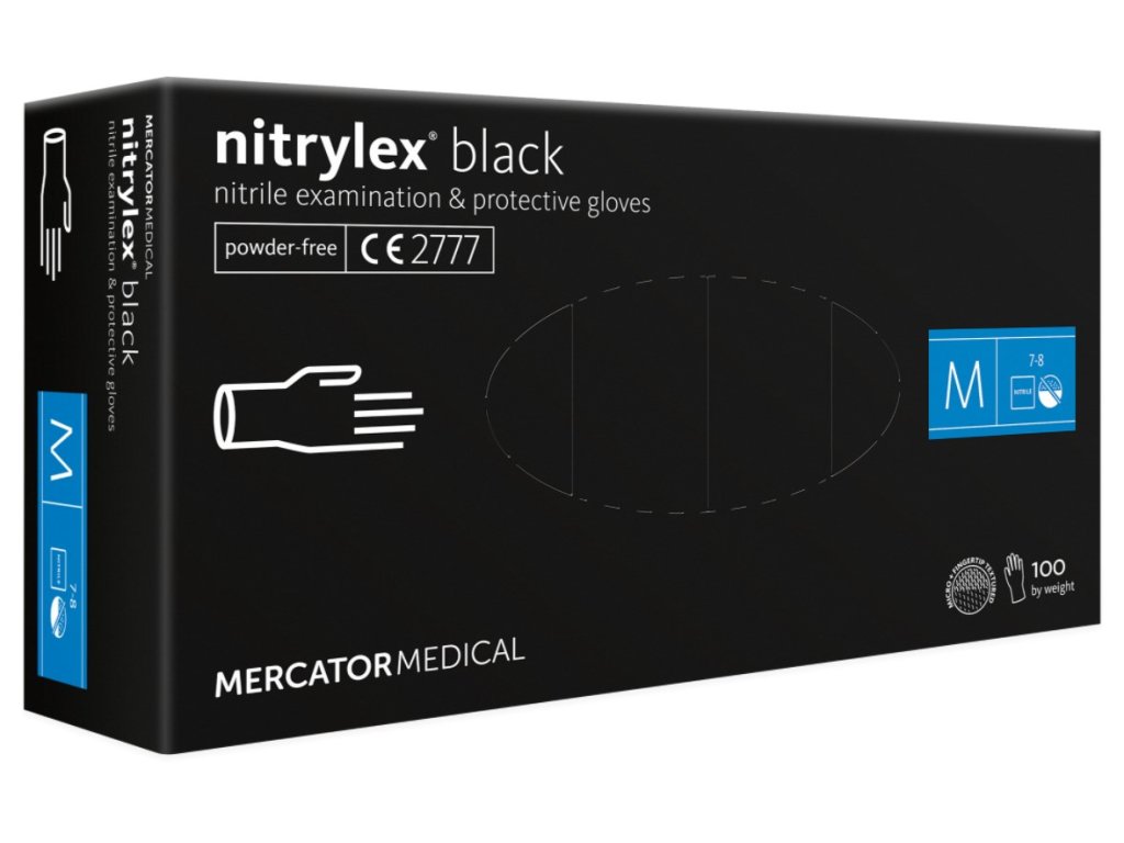 Vyšetřovací rukavice NITRYLEX BLACK černé, 100ks, nepudrované
