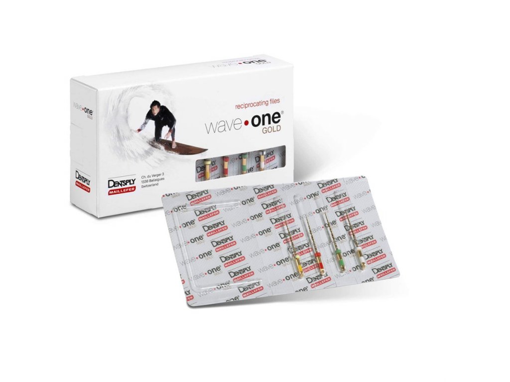 Rotační nástroje WaveOne Gold - jedinečný rotační pohyb nástroje je odvozen z konceptu a techniky vyvážené síly a je určen k řezání při pohybu proti směru hodinových ručiček. Následuje krátký pohyb ve směru hodinových ručiček a znovu záběr proti směru hodinových ručiček. Tři takové záběry dopředu a dozadu znamenají, že se nástroj otočí o 360°. - pouze jeden nástroj preparuje celý kanálek - reciprokační pohyb (nejdřív dopředu a pak mírně zpět) - geometrie řezání přizpůsobená pro recipro pohyb - vynikající flexibilita a odolnost díky slitině M-Wire - hygienický standard - 1 nástroj na jednoho pacienta WaveOne Gold - nová NiTi slitina gold má o 50 % vyšší rezistenci proti únavě materiálu. U většiny klinických případů postačí použití jednoho nástroje. Balení 3 ks.